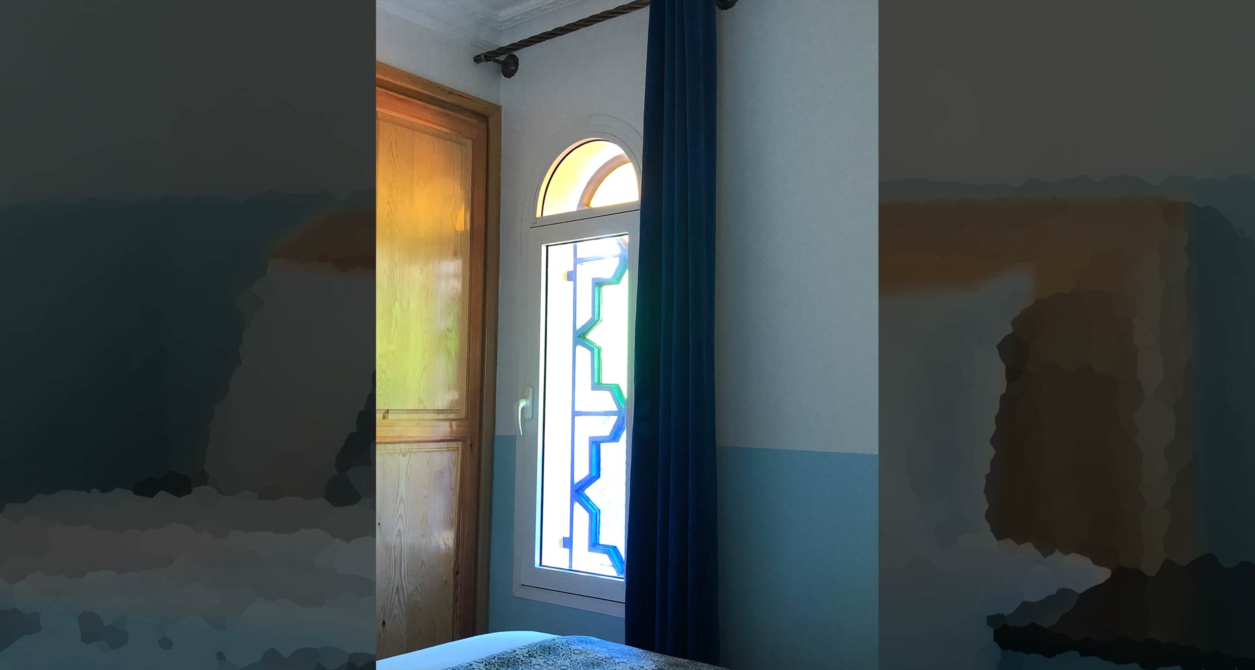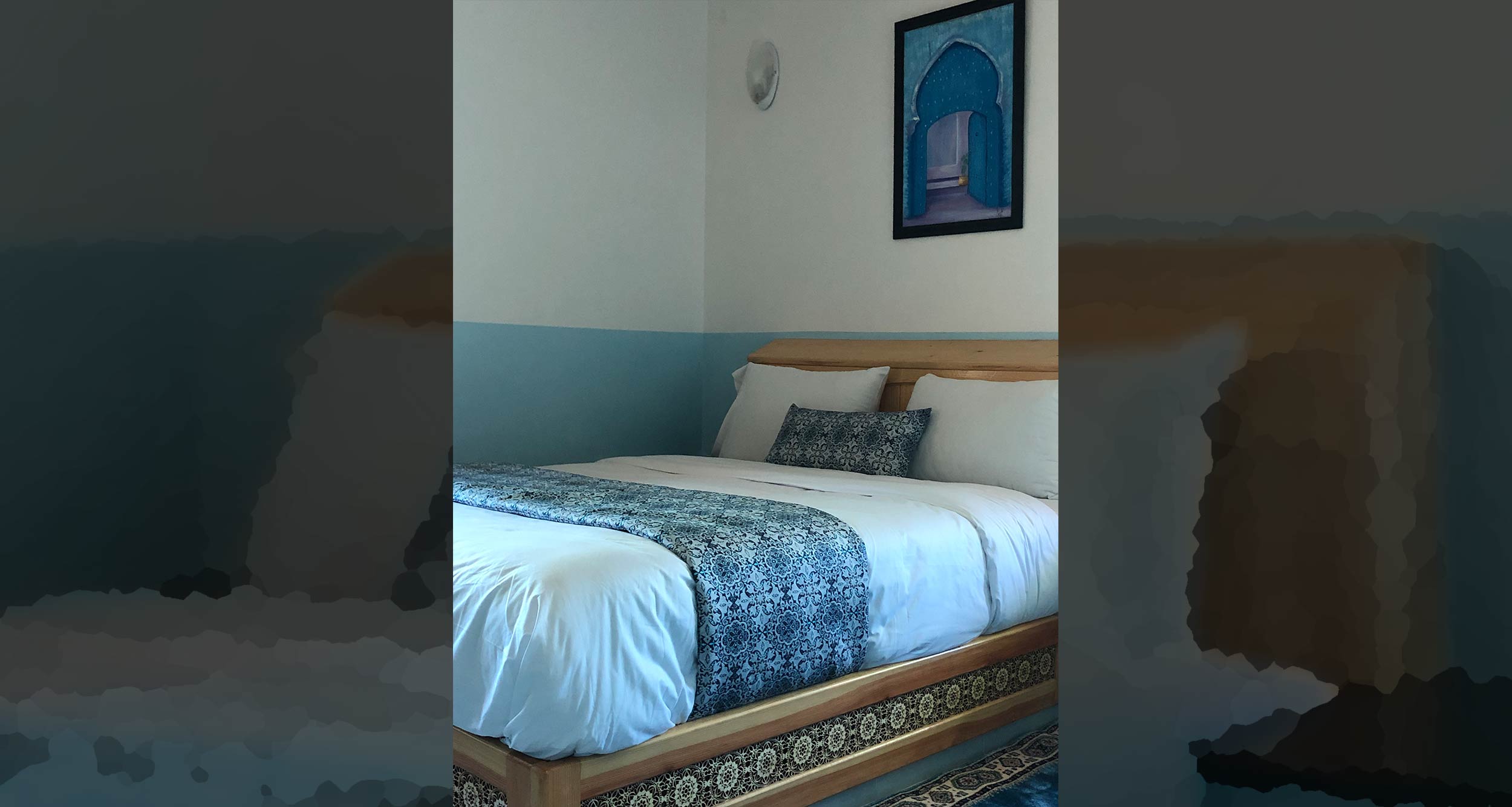 Chambre chefchaouen : avec ses murs bleus cette chambre vous ramènera dans l’ambiance de la belle ville de chefchaouen tout aussi calme et ravissante…