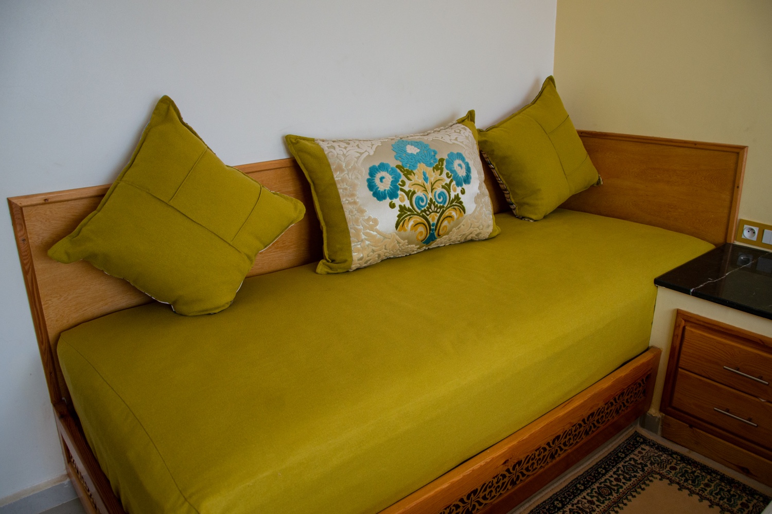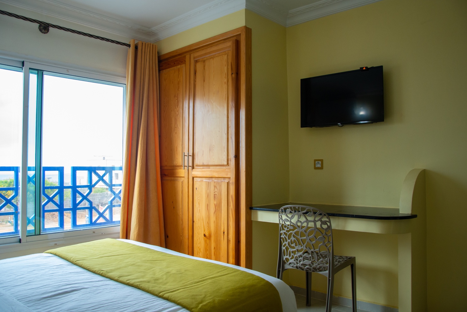 Sable d’Or Chambre confortable à la décoration élégante et couleurs spécifiques avec une vue spectaculaire sur la mer..
